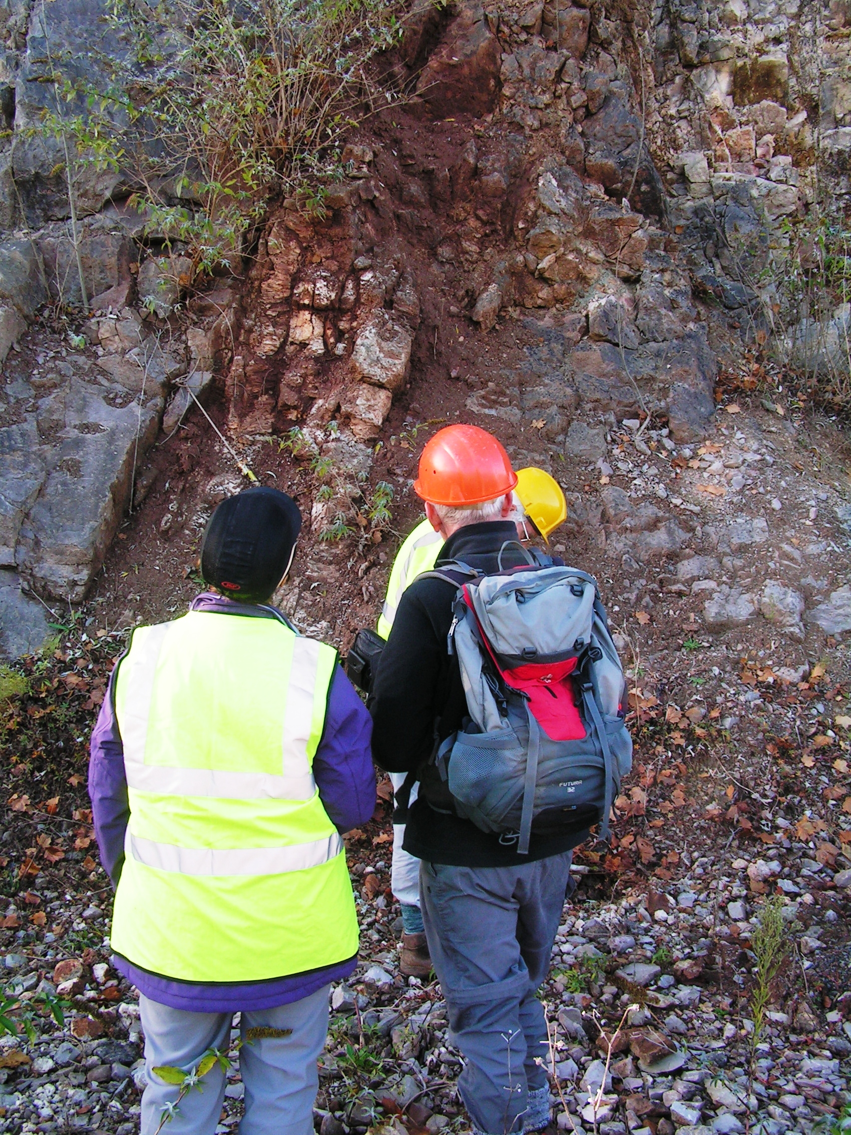 Fissure in dolomite filled with debris derived from Triassic formations