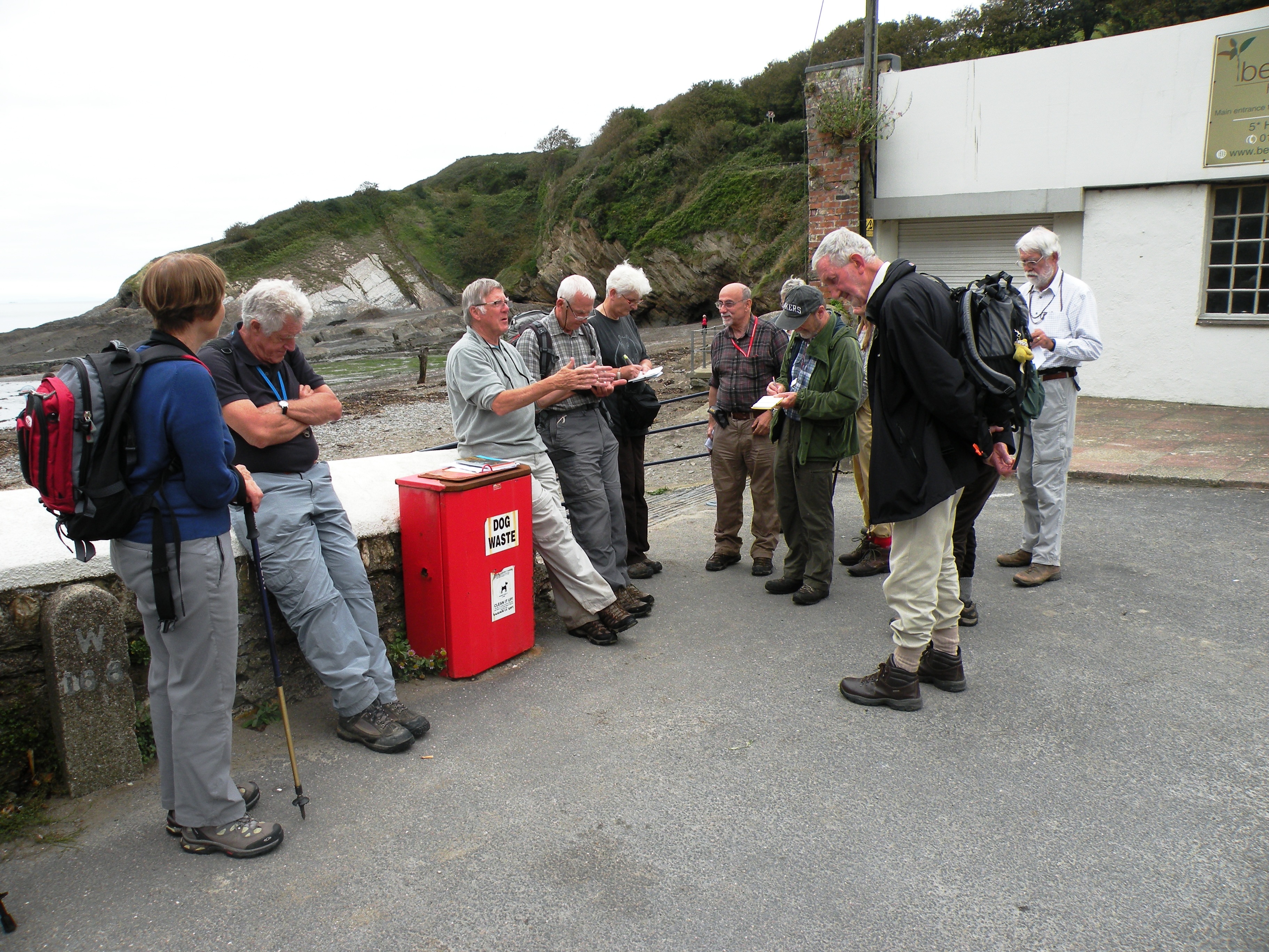Hele Bay – our leader taking advantage of a useful bin as a table